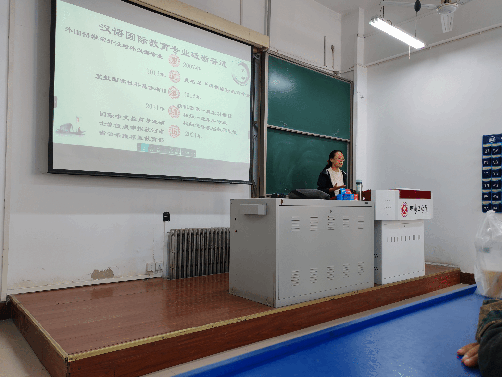 首先,陈辉向同学们介绍了汉语国际教育专业的发展历程、团队力量,并对专业课程体系设置、学科竞赛、就业方向、考研、国际中文教育志愿者选拔等问题进行了详细讲解。
