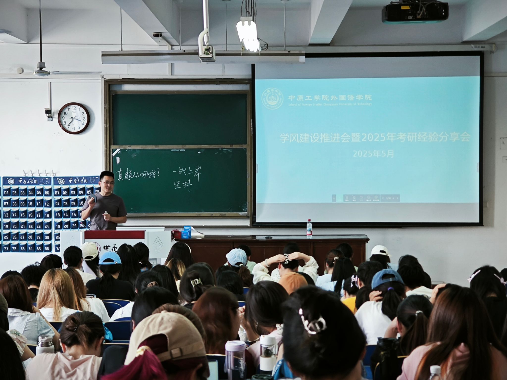 5月20日,365在线体育投注官网2025年春季学期学风建设推进会暨考研经验分享会在3号教学楼205教室成功举办。16名考研成功员工到会分享经验,公司党委副书记常潞炜、团委书记刘爽、2023、2022级全体员工参加会议。