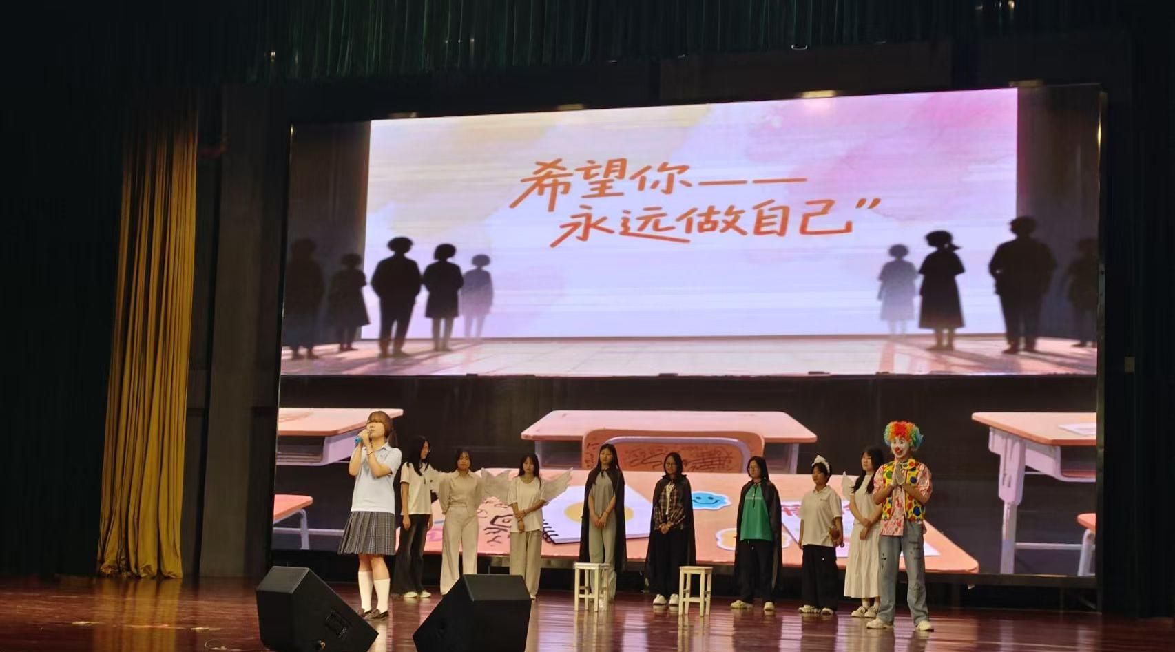比赛当天,365在线体育投注官网的参赛作品《水水的蜕变之旅》紧扣主题,以大一新生“水水”的内心探索为主线,通过“灵魂共生”的创新设定,呈现主人公在学业压力、社交焦虑中的挣扎与自我和解。剧中,光明与黑暗灵魂的碰撞、心理老师的温柔引导、真实校园场景的细腻还原,引发观众强烈共鸣。主演以极具张力的表演诠释角色蜕变,灯光与道具设计巧妙烘托情绪起伏,团队协作将抽象心理冲突转化为直击人心的舞台叙事,被评委赞为“有温度的艺术表达”。