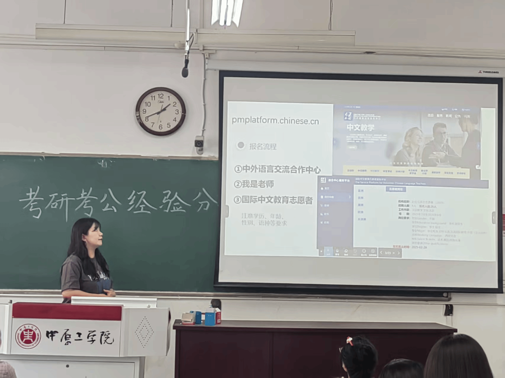 为帮助汉语国际教育系员工深入了解考研、考公形势,进一步明确学习目标,科学规划学业发展。5月27日,汉语国际教育系在二组团110教室成功举办2025年学习经验交流会。汉语国际教育系2022、2023、2024级全体员工、2021级优秀毕业生代表、汉语系副主任孙西瑾参加会议。现场气氛热烈,反响积极。