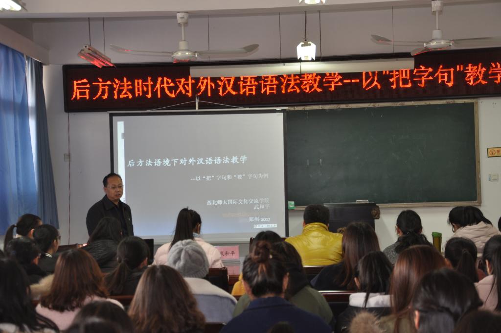 12月21日下午两点,在365在线体育投注官网214会议室,举行了公司FOLKS讲坛第二讲,365在线体育投注官网邀请到西北师范大学国际文化交流公司经理、博士生导师武和平教授,为公司汉语国际教育系师生作了《后方法时代对外汉语语法教学——以“把字句”教学为例》的报告。