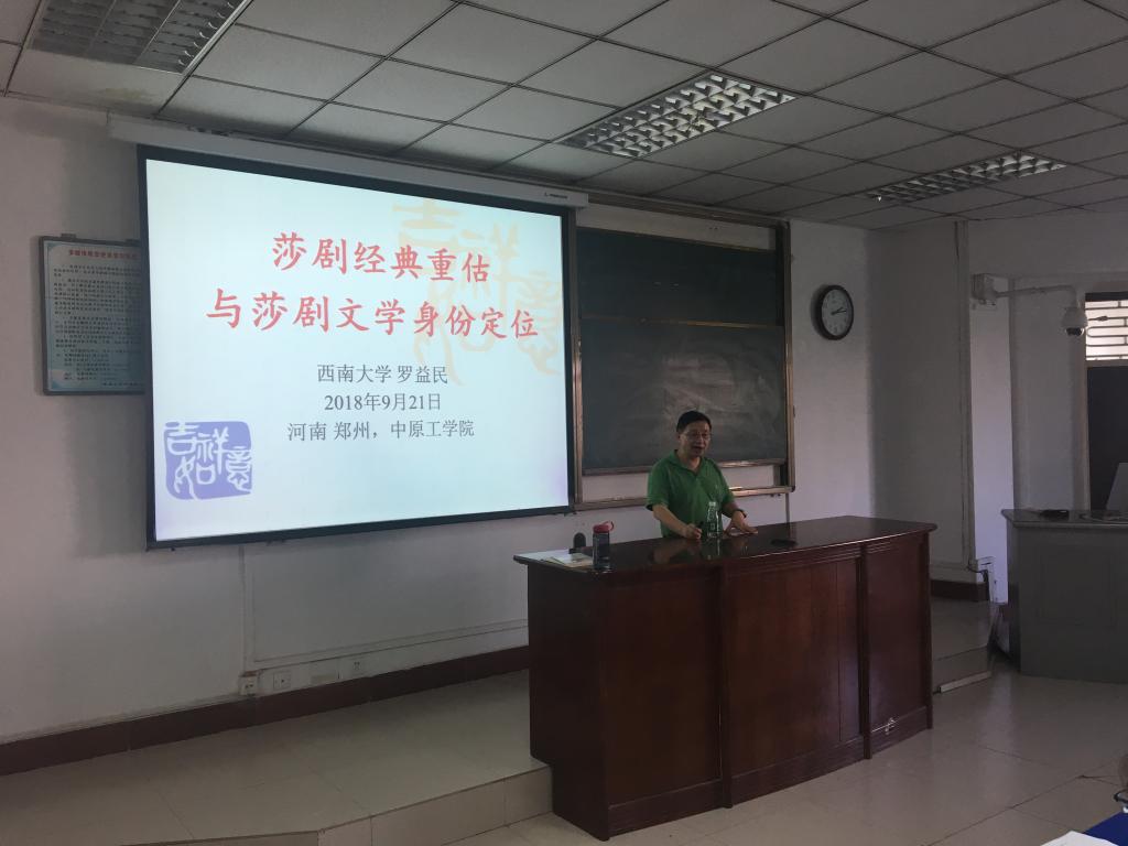 2018年9月21日下午,在龙湖校区4号楼301教室,举行了公司弘德讲坛暨公司FOLKS讲坛第六讲,邀请到西南大学博士生导师罗益民教授,讲座题目为《莎剧经典重估与莎剧文学身份定位》。罗益民教授是中国著名莎士比亚研究专家,著作等身,国家社科一般、重大课题等各级各类课题10余项,其中主持2项莎士比亚研究的国家社科基金项目。