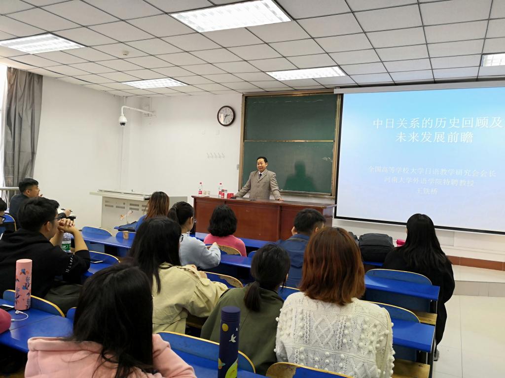 11月2日,河南大学特聘教授、博士生导师王铁桥应邀来公司作学术报告,报告题目为《中日关系的历史回顾及未来发展趋势展望》。学术报告由公司365在线体育投注官网日语系主任边冬梅主持,公司365在线体育投注官网日语系师生共二百余人聆听了报告。