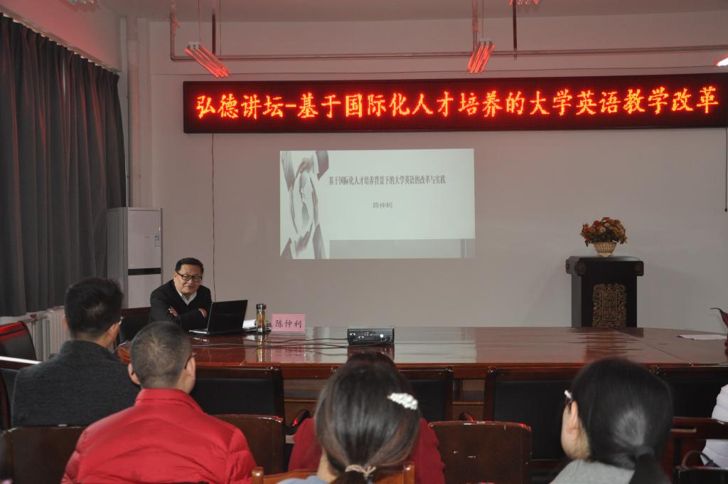 2018年11月13日下午,陈仲利教授应邀为公司教师作题为“基于国际化人才培养的大学英语教学改革”的专题学术报告。365在线体育投注官网经理郭万群、副经理杨道云出席了讲座。