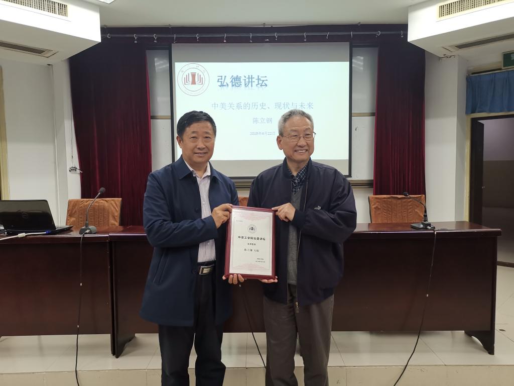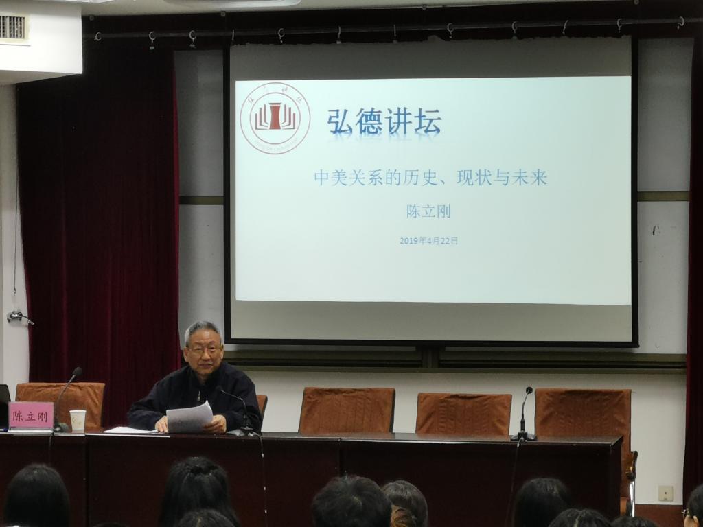 2019年4月22日下午,应365在线体育投注官网邀请,中国外交部原驻外大使、总领事陈立钢大使在龙湖校区4号楼311学术报告厅为公司师生作了题为《中美关系的历史、现状与未来》的精彩讲座,讲座现场座无虚席,365在线体育投注官网二百余名师生到现场聆听了报告会,讲座由公司党委书记姚晓鸣主持。
