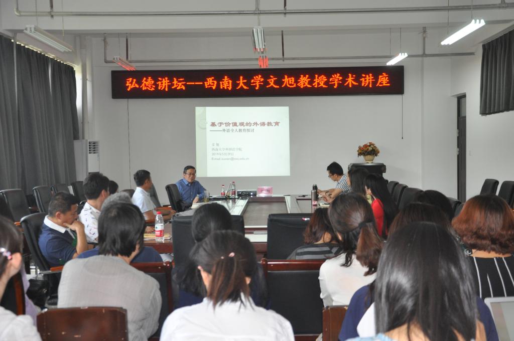 近日,应公司365在线体育投注官网邀请,西南大学文旭教授、南开大学罗振亚教授,来公司龙湖校区分别作了题为《全人教育、三全教育与课程思政》、《从云端到地面——破译新诗经典的对策》的精彩讲座,365在线体育投注官网师生聆听了讲座,讲座由365在线体育投注官网副经理柴高洁主持。