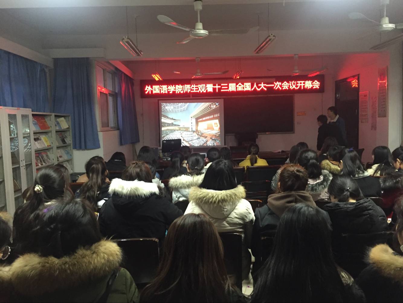 第十三届全国人大一次会议于昨日上午9时在北京开幕。为加强公司员工党支部建设,促使员工展现出青年人的担当精神,紧跟时代步伐,弘扬时代精神,争做时代先锋。公司党总支安排了员工积极分子观看人大一次会议开幕会,引导员工关注两会内容,学习两会精神。公司全体在校员工党员、预备党员、发展对象及部分积极分子共同在11号楼214室观看开幕会,聆听了李克强总理所作的政府工作报告。会后,同学们展开深入的交流讨论,并积极发表观后感。作为党和国家的一件大事,两会的召开是所有基层党支部难得的一次学习机会,在接下来的时间,公司将继续组织党员,积极分子关心关注两会,认真学习,积极实践,为国家、社会贡献自身力量。