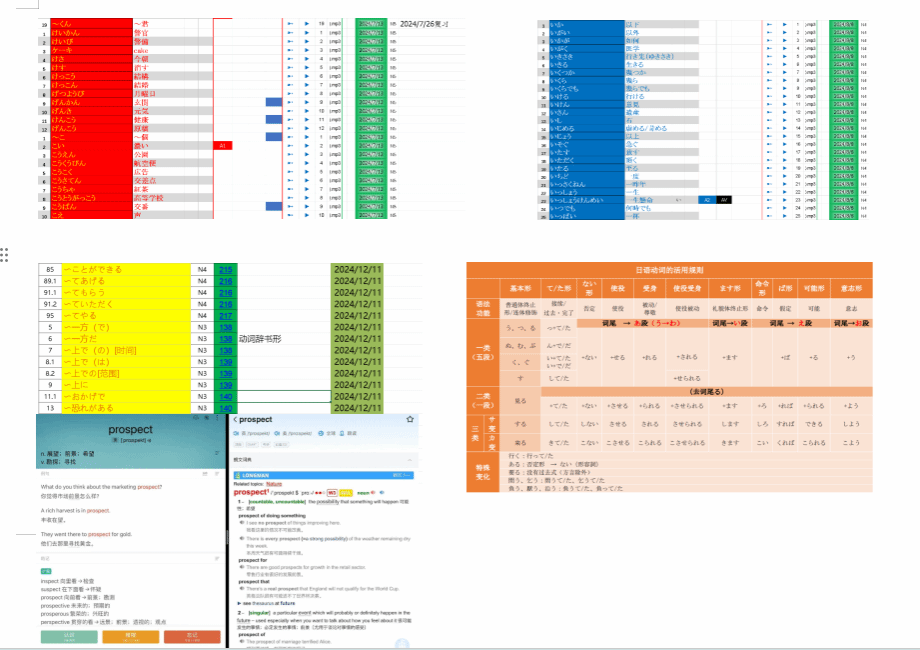 hero3046:自制文法词汇查询Excel | 包含N5-N1所有单词,包含蓝宝书N5-N1所有语法,还包含考研对策、副词辨析等内容,检索十分方便快捷 |