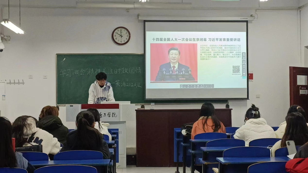 2021级团支部开展“学习两会精神,关注时政国情”团日活动,教育引导团员青年怀抱梦想又脚踏实地,敢做敢为又善做善成,立志成为有理想、有担当、能吃苦、肯奋斗的新时代好青年,让青春之花在全面建设社会主义现代化国家的实践中绽放。