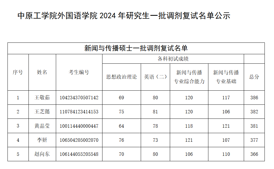 365在线体育投注官网2024年硕士研究生复试综合成绩公示(一批调剂 )