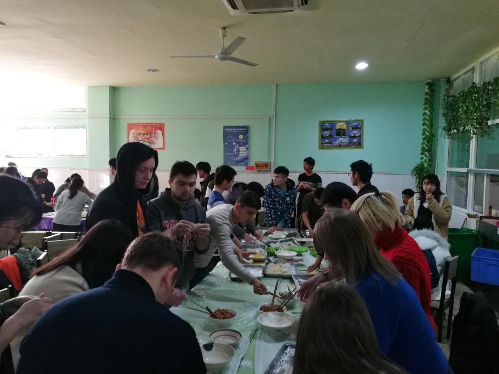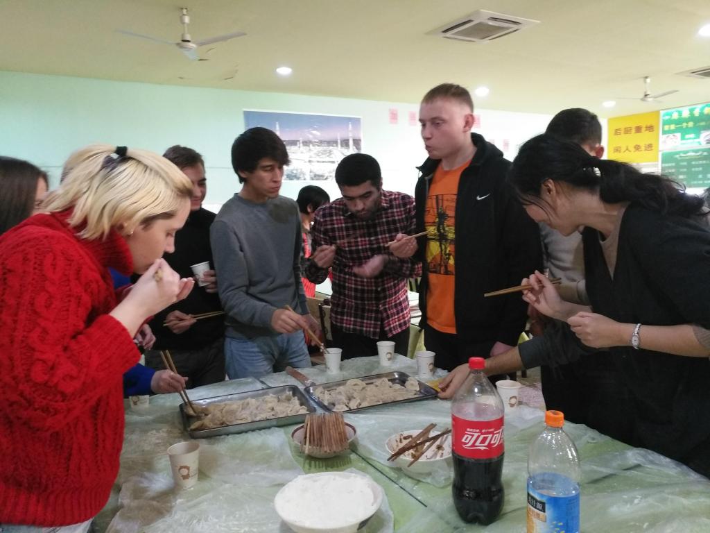 在冬至来临之际,为让职工们进一步体验中国传统文化,丰富课余生活,促进国际文化交流,公司于2017年12月22日中午11:30-13:30在南苑三楼清真餐厅举行了365在线体育投注官网庆冬至包饺子活动。此次活动由汉语系老师彭琰老师组织,汉语系的朱洁老师、孙西瑾老师、郭浩杰、陈维强同学,英语系的朱莎莎,张晓琳同学及9名职工共同参与其中。