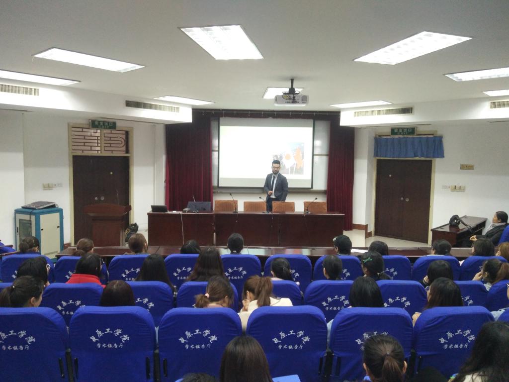 一开始,孙世超学长以图片文字的方式向同学们生动形象地展示了他在日本的生活、学习和工作,讲解了自己在求学、择业、创业时的想法、行动、以及感悟。作为第一届日语系毕业生,孙学长强调了把日语学好的重要性,并指出我们应突破舒适圈,多出去看看,增长见识,开阔眼界。对于赴日留学问题,孙学长则分享了自己在日本职工活中的酸甜苦辣,以亲身经历鼓励同学们拿出勇气,挑战自己,并提出“君ならできる、僕ならできる”的口号。最后,孙学长现场详尽地解答了学弟、学妹提出的问题并且贴心送出带来的日本特产,会上气氛热烈,掌声雷动。