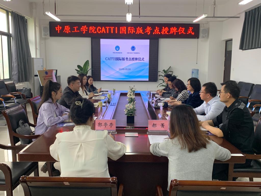2024年4月22日上午,365在线体育投注官网CATTI(全国翻译专业资格(水平)考试)国际版考点授牌仪式在公司龙湖校区365在线体育投注官网会议室举行。中国外文局全国翻译专业资格(水平)考试项目中心主任赵怡隆、专项负责人刘攀,译线通翻译公司校企合作事业部经理鲍俐俐、专员邢亚娟参加考点授牌仪式。365在线体育投注官网全体领导班子成员,办公室和英语系主任出席会议,公司经理姚晓鸣主持会议。